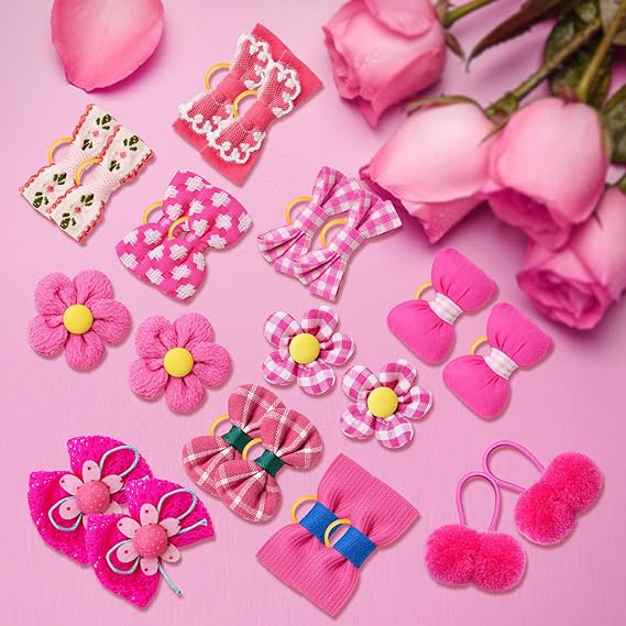 Mix Holiday Dog Hair Bows: You will get 20pcs varies colors cute small puppy dog hair bows, the color assortment and there’s two of each, dog hair bows can make little pet dog adorable and chic, your pet wearing small dog bows will stand out, charming and eye-catching. Add to her cuteness! Which is puppy dog bows with rubber bands, suitable for most small and middle sized pet. Please Trust ''Mruq pet'': Unlike low quality dog hair bows replicas, these add a different look from the normal bows. Our all bows for dogs handmade, durable, sturdiness, well made, easy to use and put, sewed with exquisite rhinestone pearls accessores, mixed all cute pattern and color, dog hair bows perfect for any occasions. Soft Material: The dog grooming bows made high excellent quality lace soft and durable, dog hair bows with rubber bands, even when the dog is running or jumping, little bow pets can prevent the hair from blocking the dog's vision, rubber bands can be firmly fixed, not easy to fall off, can be comfortably stretched. Size : Mix size, you can different choices puppy hair bows to dress up your cute dogs to quickly change your dog’s look and style. Hair bows for dogs great for doing hair styling and embellishments for your pet. Fit for small puppies yorkies, poodle, pomeranian, bichon, schnauzer, shih tzu, maltese, pug, chihuahuas, papillons etc. Excellent Pet Dog Hair Accesssories: ''Mruq pet'' puppy hair bows will make your pet cuter and lovely, you can send them to your close furry friends, they are suitable for daily use, besides, also suitable for birthday parties, weddings, beauty shows, baby showers and other celebrating events, dress up it for every day, and holidays and will surprise everyone for sure.