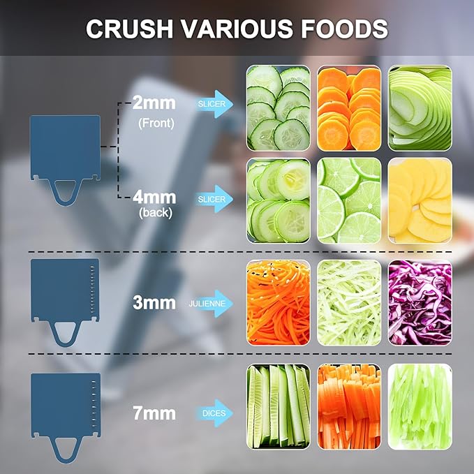 【Multifunctional Mandoline Food Slicer】Our kitchen mandoline slicer is not just a slicer, but also integrates slicing, dicing, julienne, shredding and other functions to meet your different cooking needs. Whether it is big potatoes, cucumbers, carrots, cabbage, onions, or all kinds of vegetables and fruits, you can easily cope with it, making your kitchen work simple and efficient. 【Safer and Easier】Keep your hands away from the built-in blade and no longer cut your fingers. The operation is more labor-saving, just push the wide and comfortable handle up and down, and start it smoothly with a little force. Save more kitchen time with fast chopping! Its ergonomic design makes you feel comfortable during use and reduces hand fatigue. 【Evenly Cut, Cooking is More Delicious】Accurate cutting design ensures that the thickness of each piece of ingredients is the same. Whether it is stir-frying or salad, it can maintain the taste and nutrition of the ingredients and make your cooking results better. 【Easy to Clean】Our mandoline slicer adopts a detachable design, and the blade and food contact parts can be easily removed. It can be washed with water without using complex cleaning tools, so that you can have more time to enjoy a good time with your family. 【Perfect Kitchen Gift】 Beautiful in appearance and practical in function, buying this mandoline slicing tool for a friend who has never owned a mandoline will definitely be a big surprise and become a long-term companion in the kitchen.