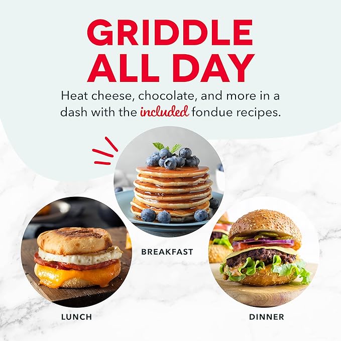 MORE THAN PANCAKES: Make individual servings for eggs, cookies, pancakes, grilled cheese without the need for multiple pots/pans COMPACT + LIGHTWEIGHT: Weighing 1lb+, this is a MUST-HAVE for that first apartment, smaller kitchen, college dorm life, or camper/RV traveling. Cord length- 31 inches QUICK + EASY: Simply plug it in and wait for indicator light to turn off; it heats up in mere minutes The dual non-stick surfaces provide an even cook for consistent results, each and every time PERFECT GIFT: The perfect wedding or new home gift Its small size takes up little counter space, and its sleek design and trendy color options will match any kitchen décor (add to your registry now) INCLUDES: The 350 watt DASH Mini Griddle maker includes recipe book and recipe database access (all non-electric parts are easily wiped clean)