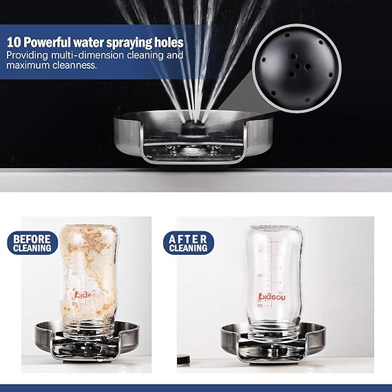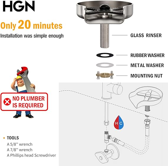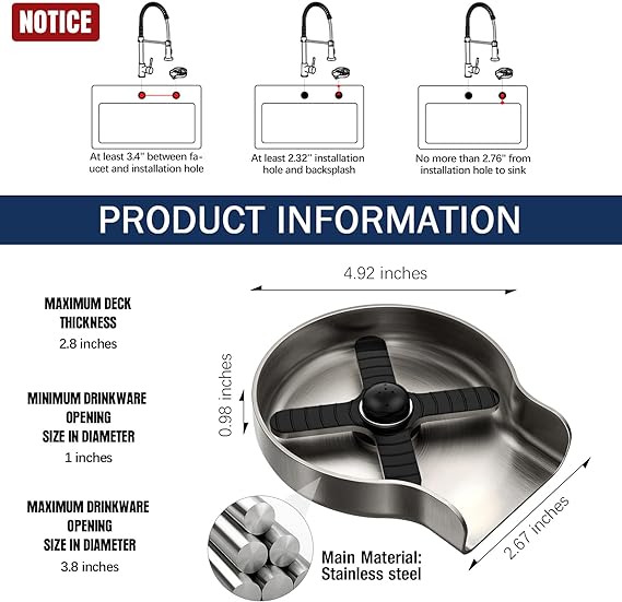 Quick cleaning】Brush Nickel,classical and elegant, can be matched perfectly with your kitchen environment. Multi-angle water outlet cleaning head realizes multi-angle spray hole washing and effectively wash your cup, saving time and effort, convenient and practical. 【Convenient and efficient】From wine glasses to baby bottles to travel cups, it conveniently rinses virtually any drinkware, so you can spend less time soaking and scrubbing. Brush Nickel finish resists water spots and fingerprints 【Simple to use】Put the mouth of the cup downward and press the bottom of the cup lightly to automatically spray water for cleaning. When the cup is cleaned, remove the cup and stop spraying water. 【Simple DIY project】Simple DIY replacement for a soap dispenser, kitchen sprayer or sink hole cover - the perfect complement to your kitchen Faucet.It only takes your several minutes to install our glass rinser all by youself. 【3-Year Guarantee】Please be attention that we provide 3-year guarantee on this product. Within 3 years after items received, if there is any problem with the items (quality, function, etc.), please contact us,will solve the problem for you within 24 hours. We’re confident with the quality and function. If you’re not happy with it, just send it back.