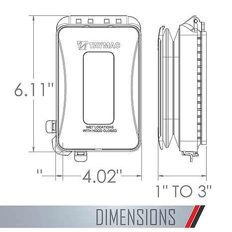 WEATHERPROOF COVER: Get tough and reliable protection, the white polycarbonate 1-Gang Weatherproof In-Use Electrical Outlet Cover for home improvement is NEMA 3R rated and cULus listed for wet and damp locations. EASY TO INSTALL: Set up your outdoor outlet cover in no time at all. Quick-Fit keyhole mounting system allows installation under a minute for either horizontal or vertical mount. 16 CUSTOM CONFIGURATIONS: Our weatherproof outlet cover uses UFAST for 16-in-1 custom device configurations. You can mount and protect duplex, switch, round, or GFCI outlets. QUALITY CONSTRUCTION: Our socket cover for outlets is built from high-impact polycarbonate for maximum durability and synthetic neoprene rubber that won't dry rot, crack, or deteriorate in sunlight. EXPANDABLE DESIGN: Our weatherproof expandable cover can extend from 1 inch to 3 inches deep depending on your needs. The clear window allows for quick visual inspection without opening the unit.