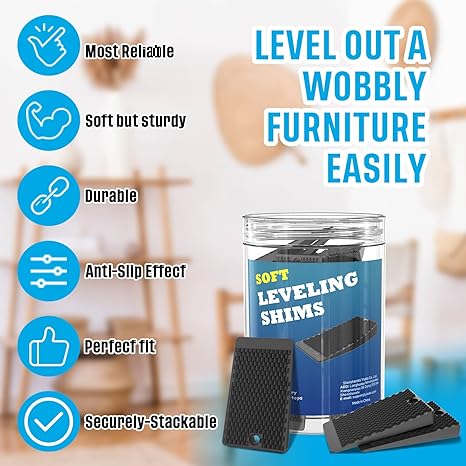 ✌️ UNEVEN FLOORS? Yarkor furniture shims is excellent for areas where adjustments are needed. Simply place the wedge under the leg or foot that does not meet the floor to create a more even surface for your furniture. ✌️ NON-SLIP DESIGN --These table shims are designed with grooved bottom surface, make it hold the furniture firmly in place, prevent them slipping or sliding. That it can easily absorb vibrations and shakes thanks to its rubber material. What’s more, you’re guaranteed no scratches or damage to your porcelain and other bathroom appliances. ✌️ CUTTABLE, STACKABLE & BENDABLE --Yarkor table shims can be cut down to appropriate size easily. it also can be stacked together to create a higher wedge if necessary. It will hold 22,000 pounds of pressure without fail. Perfect furniture levelers, toilet shims, and more. ✌️ SMALL GADGET, BIG HELPER -- These shims make leveling doors, windows, plumbing fixtures, cabinets, playhouses, sheds, deck & mailbox posts a breeze. it is perfect for restaurants and bar. Enhance customer experience by eliminating wobbling tables and chairs, and offer a more professional atmosphere for your guests. ✌️ TOUGH AND DURABLE -- Yarkor table shims will hold 22,000 pounds of pressure without fail. Perfect furniture levelers, toilet shims, and more.